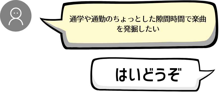 オススメの楽曲を次々と気軽にチェックして「好き」を広げるサービスです。
